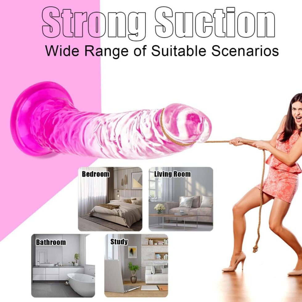 The strong suction cup lets you stick it to any smooth surface for hands-free pleasure. Or pair it with a harness (1.5″ O-ring) for adventurous partner play.