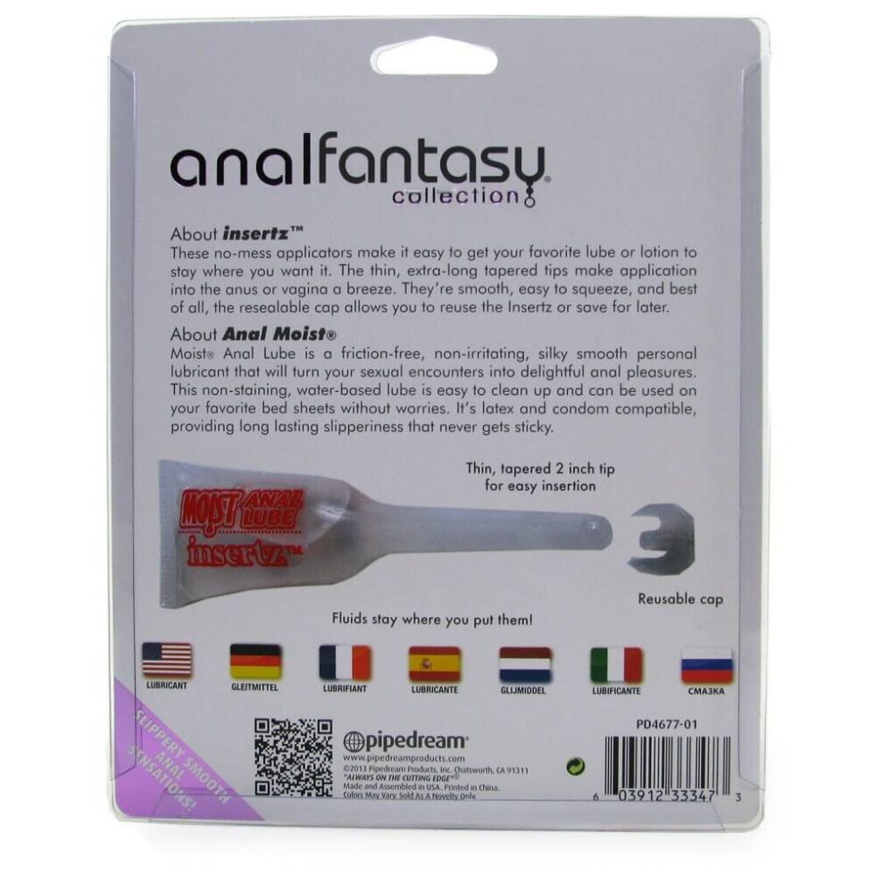 Presenting an incredibly quick, mess free way to lube up for anal fun, the Moist Anal Lube Insertz kit contains three fantastically portable sample size tubes of ultra slippery water based, friction eliminating bliss designed for the most perfect placement.