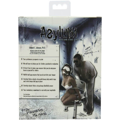 Explore your darkest medical fantasies with ASYLUM. This range has everything you need to enjoy the doctor/patient relationship and take it to a whole new level. Playing doctors was never this much fun, or this dark. THE DOCTOR WILL SEE YOU NOW………… Asylum Patient Restraint Kit includes: 10 ft. nylon rope Waffle ball gag with elastic Velcro strap fits most Blindfold with elastic Velcro strap keeps blindfold secure.