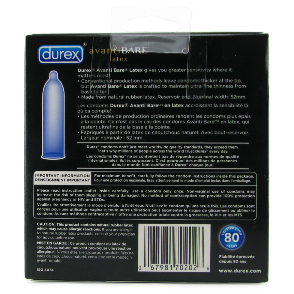 With over 75 years of experience, you could safely say that Durex has perfected the art of protection. Not only do Durex condoms guard against sexually transmitted infections and unplanned pregnancy; they’re also designed to enhance and improve your sex life. Avanti Bare condoms are much thinner and natural feeling than traditional condoms, yet still provide superior protection. Please read the instruction leaflet carefully before using. Nominal width is 56mm.