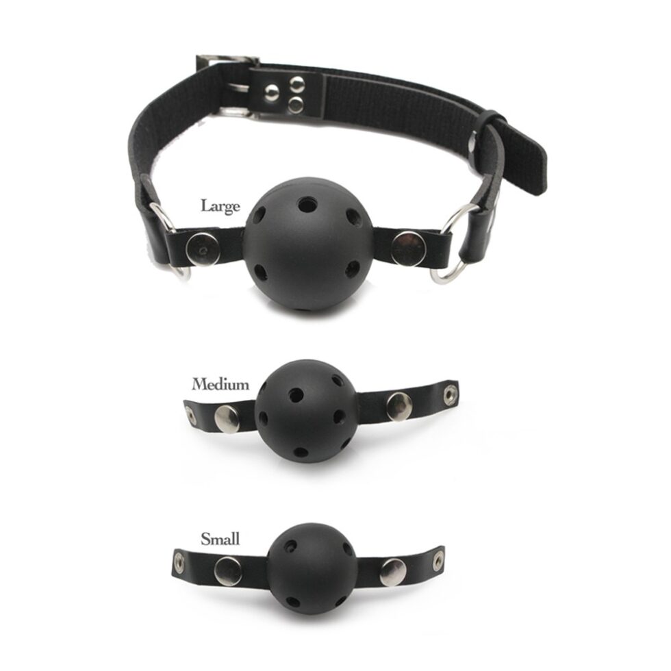 Add some fetish fun to playtime with the Ball Gag Training System from the Pipedream Fetish Fantasy Series. This set contains 3 sizes of breathable ball gags, a small, medium and large so you can work your way up to a full mouth. Each has perforations to allow for comfortable breathing, and is interchangeable on the sturdy leather strap that adjusts to fit most sizes. A blindfolding mask is included, so you can add some mild sensual deprivation to the mix.