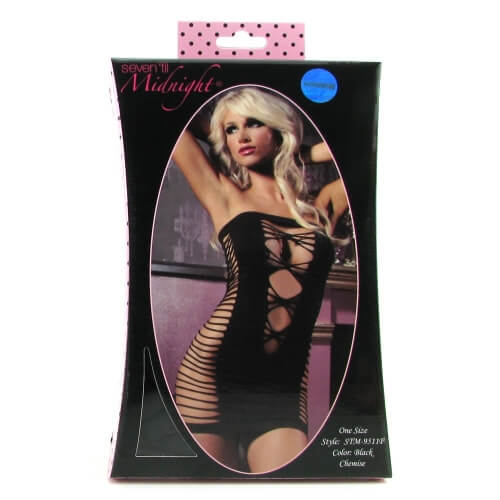 A unique lingerie piece with a curve-flattering tube shape and sexily shredded detailing, the Seductress is well named, indeed. Perfect for layering or wearing over bare skin, this sleek, seamless mini dress is guaranteed to draw longing stares. 90% nylon, 10% spandex. Hand wash. One size.