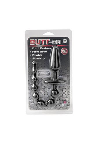 The Butt-On is an amazing unisex anal bead collection, as it has two usable ends, one that graduate from small to large beads, while the other is a butt plug.