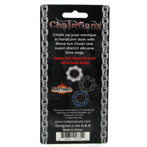 Completely body friendly, seamless and virtually odor free, the Chain Gang Cock Ring set is compatible with any type of water-based 18 desired. Fits most.