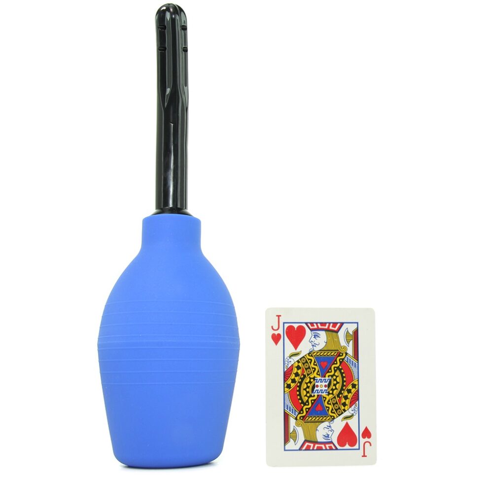 Contoured at the tip, the Premium’s nozzle screws securely to a soft blue reservoir pump ball. Fill the ball valve beforehand or place the attached tip into a chosen cleansing fluid and squeeze to draw it into the reservoir. Holds up to 7.6oz (225mL) of liquid.