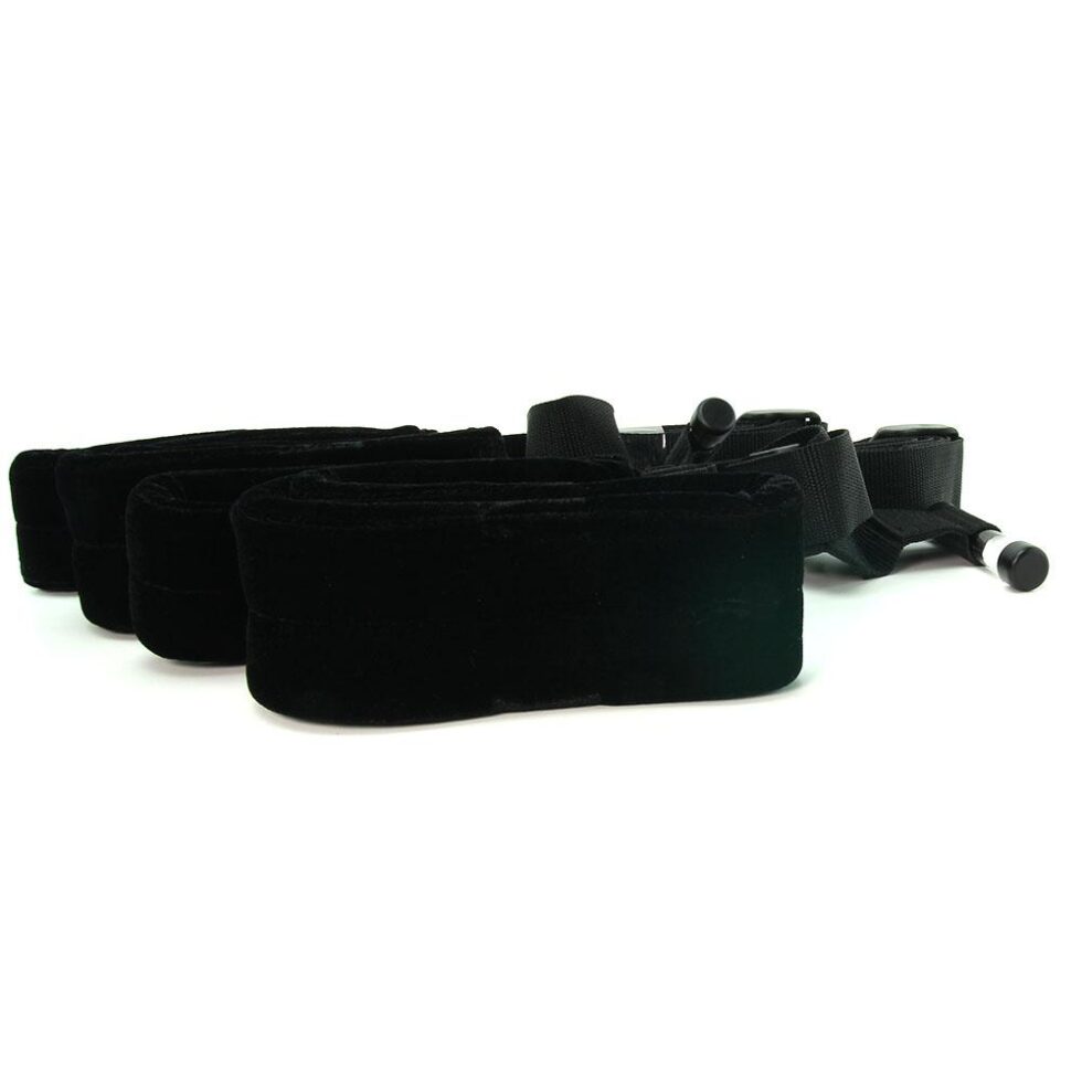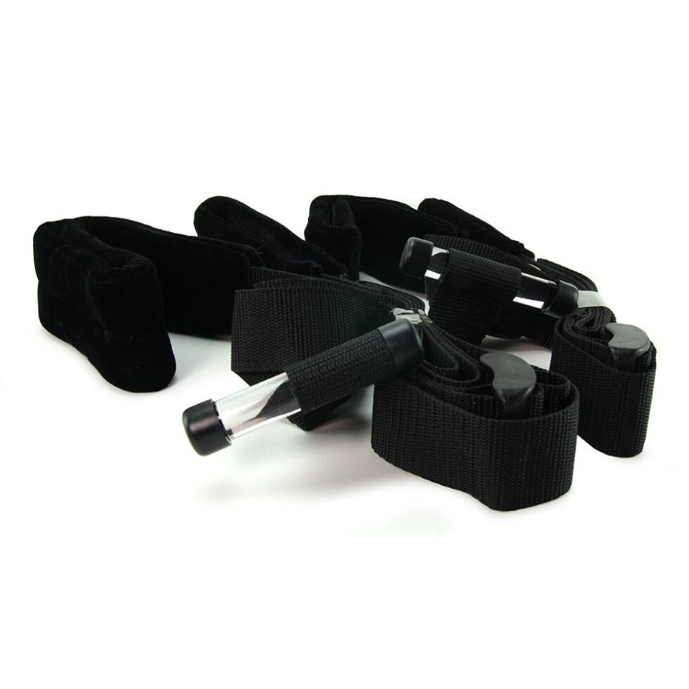 Two firm plastic stoppers ft over top of the door, holding tight once it’s closed- always set up the Door Slam on the ‘in’ side to avoid any accidents caused by the door swinging open during exploits. Once in place, two soft, padded thigh cuffs cushion, lift and spread the legs while adjustable handles provide a stable grip. All straps are fully adjustable, allowing mates to configure a perfect position situation. Holds up to 250lbs (113.4kg). Fits most standard doors.