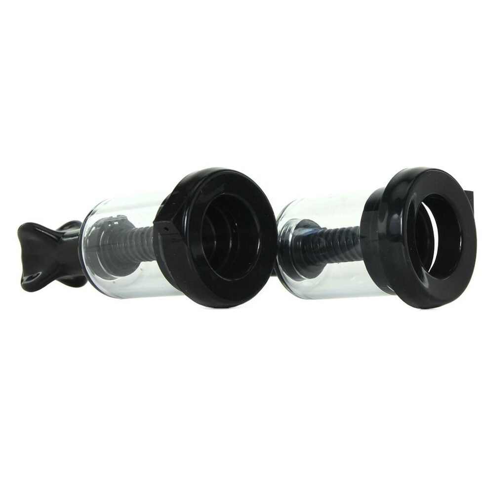 Firm and sturdy, the Suckers feature a wide silicone dipped circular opening to fully surround the nipples, clitoris and more. Press the Sucker against the skin to create a seal, and twist the black cap clockwise to activate suction- an internal plunger will rise, drawing air (and flesh) up through the cylinder as it goes. Twist the cap in the opposite direction to release internal pressure.