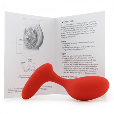 Shaped to naturally and lovingly fit the curves of the vaginal canal while a thoughtful external stem nestles against the clitoris and outer lips, Evi requires only natural contractions of the pelvic floor, otherwise known as kegels, to create internal movement and pleasure. Once inserted, you’ll be able to experiment with various kegel rhythms and body movements to produce unique sensations inside and out- Aneros provides a detailed user guide containing tips and tricks to get things started.