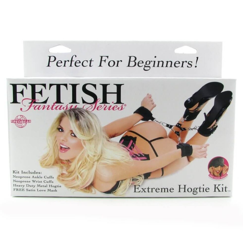 Take the reigns and control your lovers every move with the Extreme Hogtie Kit. This user friendly kit is ideal for beginners and equally great for the experienced. A set of wrist and ankle cuffs are included, which can be used alone, but really shine with the sturdy metal hogtie. To step things up even more, a soft satin mask is also included, letting you add some sensory deprivation into your sex adventures, it heightens the other senses, while blocking out light and creating anticipation of your next move. Indulge your Fetish Fantasies with this extra sexy collection.