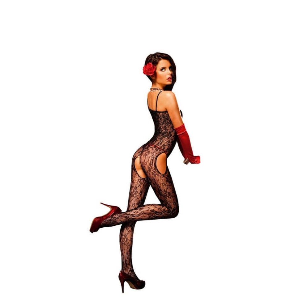 OS Flower Lace Peek-A-Boo Bodystocking