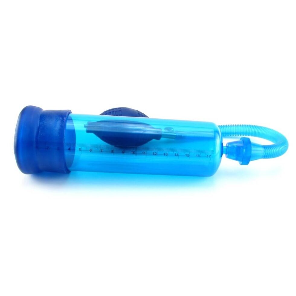 The Head Coach Erection Pump combines a powerful and precise pump with a soft, realistic feeling jelly ‘donut’ sleeve that surrounds you fully and tightly while the suction works its magic. A transparent, graduated blue cylinder lets you track your progress right down to the millimeter. The suction bulb is easy to use, the tube connecting the pump with the bulb is flexible, and the push button purge valve means you can quickly release pressure in the pump. Lube included.