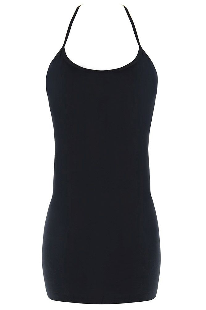 Look just as good going as you did coming in the room! This simple black mini dress is made special with the web-like straps in the back. A ring detail holds it all together and gives way to a deep plunge down the back. Hand wash cold, line dry. Do not bleach, iron or dry clean. 92% Nylon, 8% Spandex.