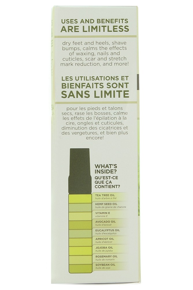 Contains hemp seed, tea tree, soybean, avocado, jojoba, apricot, rosemary and eucalyptus oils as well as natural vitamin E. Never tested on animals, Miracle Oil Spray is free of phthalates, parabens and THC.