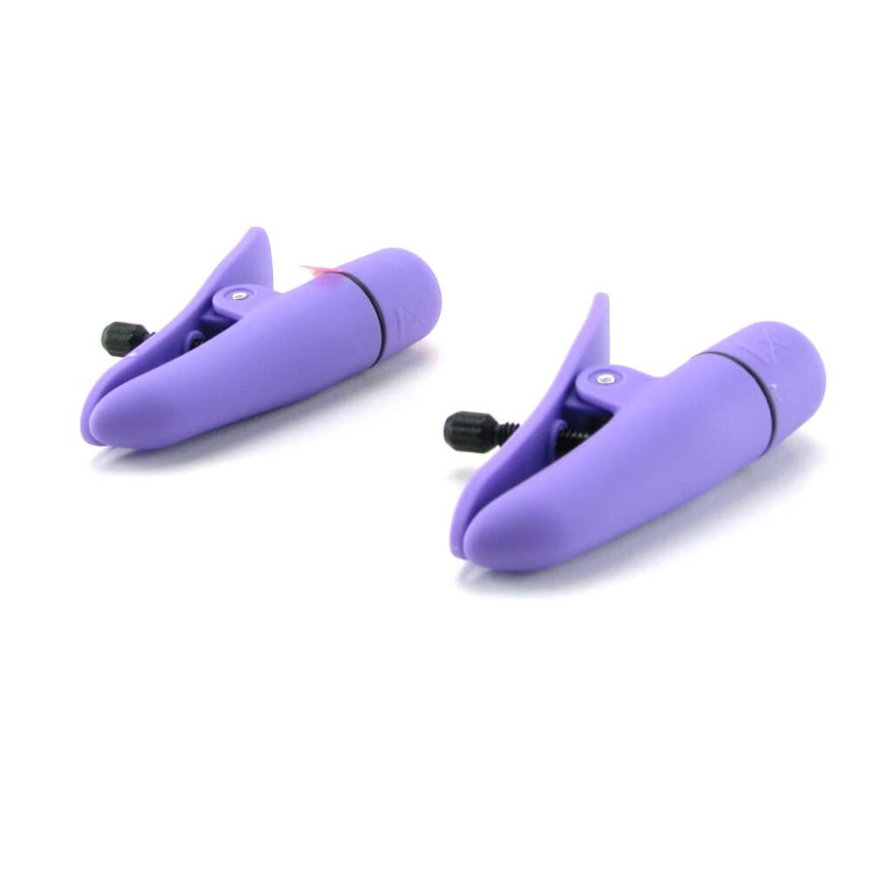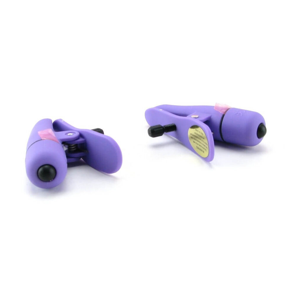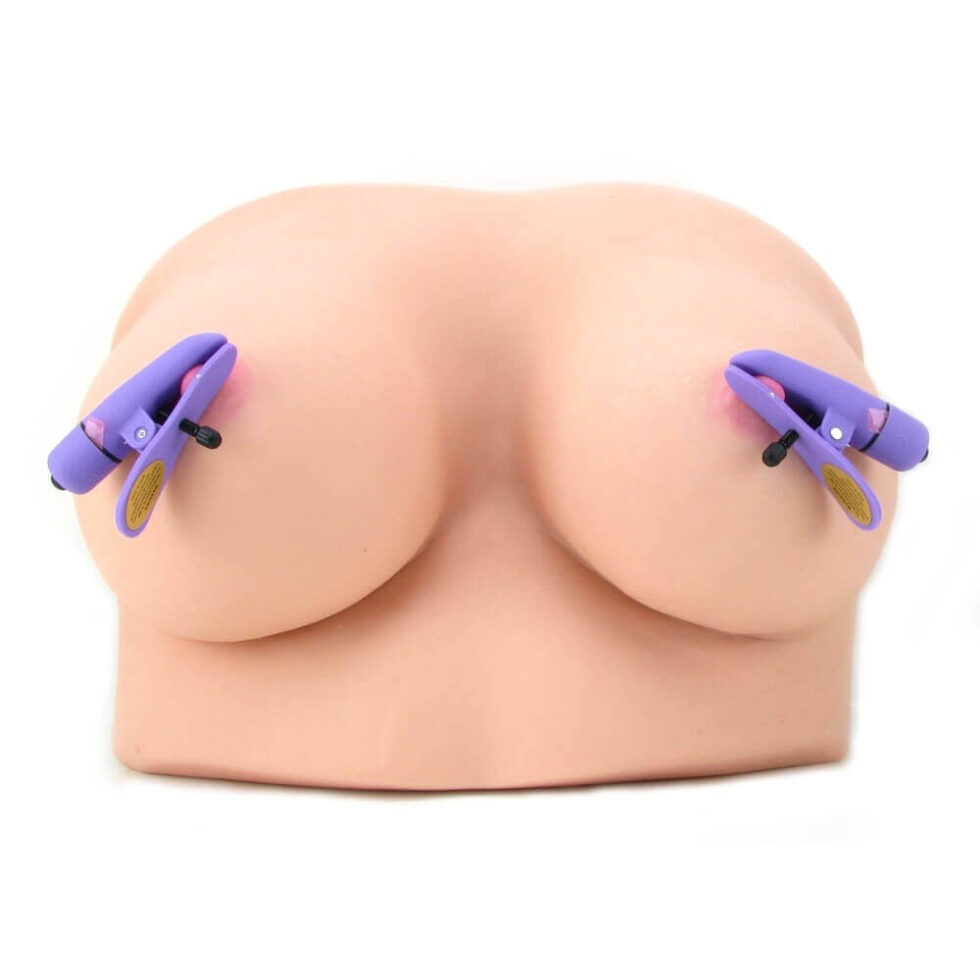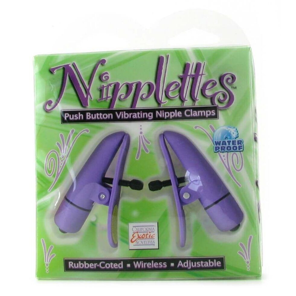 Give your nipples some attention during playtime with Nipplettes nipple clamps. There pink clamps are finished with Rubber-Cote material for a smooth soft touch, and they’re completely adjustable for the ultimate fit. These have the added feature of vibration, small push-button controls on the end of the clamps start the stimulating vibration. They’re phthalate free and totally wireless, as well as being waterproof for fun in the shower or tub. They’re 2.5 inches in length. Each clamp takes 3 LR44 watch batteries, which are included, along with extras (12 total).