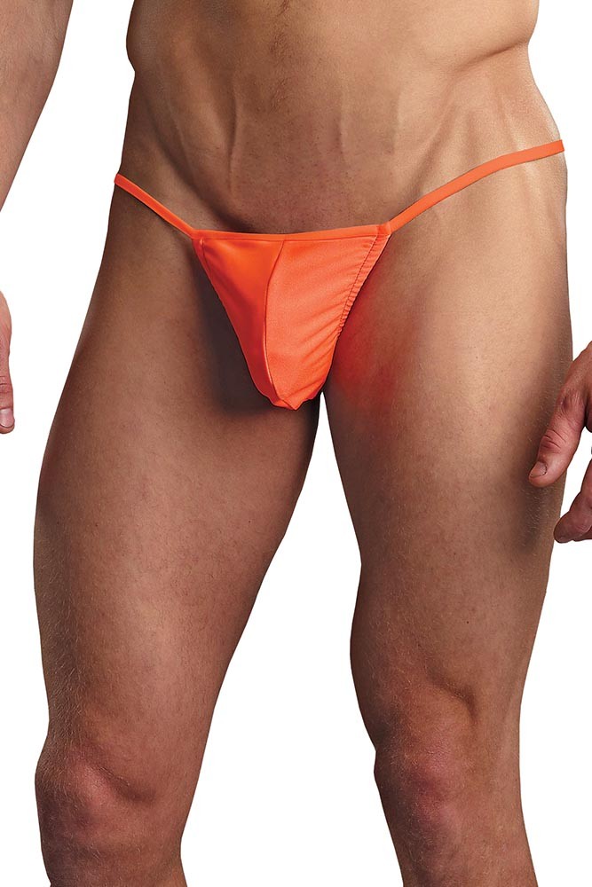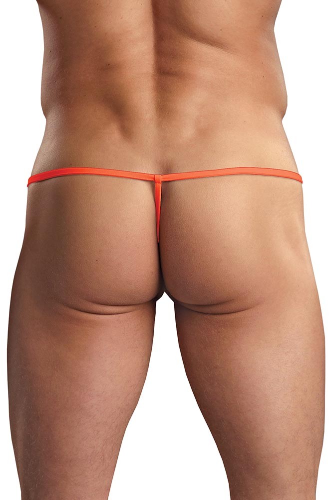 A European inspired male g-string from Male Power, this bright orange pouch puts all attention on your pert package. Slender elastic straps hug the hips, exposing lots of sexy skin under its skimpy design. 85% nylon, 15% spandex. Machine wash cold. Fits men’s sizes 36-42.