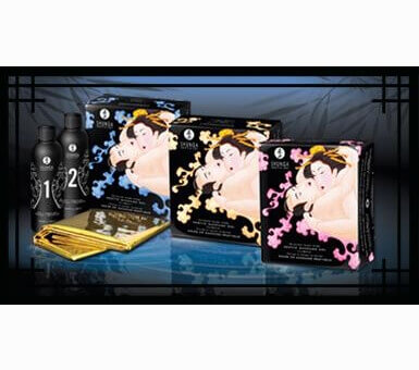 Body Slide Massage Gel – Strawberries and Champagne – Bring the exotic Orient home to your lover with Shunga Body Slide Massage Gel. Slip and slide around, over, or under your partner while lubricated with this marvelously scented Strawberries and Champagne massage oil. Foreplay will become a joy and fun again; hot, sensual, and intimate. Use your imagination and creativity and bring your lover to levels of passion and romance never thought possible. Product Information: Two 8oz./250 ml bottles of Strawberries and Champagne Massage Oil Makes 4 liters or 1 U.S. gallon of massage oil mix One large waterproof Body Slide Sheet included Comes in a beautifully decorated and ornate oriental art inspired box