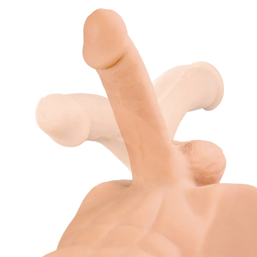 If you’re someone who loves experimenting with new positions – or maybe you like watching your partner do that same – you’ll love the Perfect Ride’s posable cock. About six inches long, it bends, flexes and arches any way you need or want. Ride’s hips are raised up high, positioning that soft-yet-firm cock within easy reach – same goes for the 14 inch penetrable anal canal. The closed-off design naturally creates suction as you thrust, plus, it contains any orgasm aftermath. No muss, no fuss!