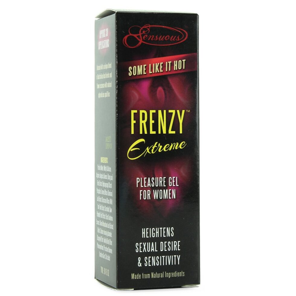 Packed with natural bush herbs and flower essences combines with natural aphrodisiacs, Frenzy works quickly to increase blood flow and maximize sensation, awakening nerve endings to an orgasmic tingle. To use, apply a very small amount to a finger tip and gently rub over the clitoral area. Warmth should begin spreading after a few moments, wait to gunge individual effect before applying more.