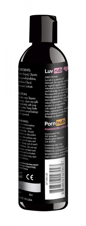 Luvrub contains no parabens, making it perfect for anyone with sensitivity to other lubricants. The water-based formula is FDA 510k approved and cleans up easily, never staining your clothes or sheets, so feel free to get wet and wild! Everyone knows, the best sex makes the most mess!