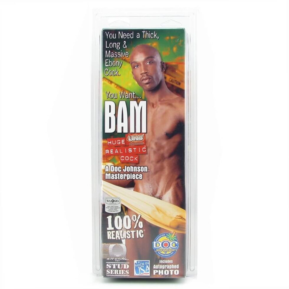 The Bam Cock from the amazing Realistic Stud series by Doc Johnson is a shocking 14 1/2 inches long with a girth of just over 8 inches around. Needless to say, this is one big BIG cock, and it’s about as realistic as you can get. Made from UR5, a revolutionary material that looks and feels just like human skin, you’ll feel each vein and ridge on this dildo that was molded directly from the legendary Bam. We’re big fans of the SilAgel formula that the Bam is enhanced with, it adds an amazing flexible texture and feel, and is anti-bacterial, non-toxic, latex and cadmium-free with no rubbery scent. The base features a strong suction cup so Bam can be mounted on most flat surfaces and be used hands-free. The extremely large size and thickness makes this a great choice for an experienced user (NOT for the faint of heart!), if you’re a beginner, check out our other products for something similar in a smaller size. Enjoy!