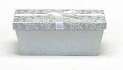 This Rectangle Box with Ribbon in SILVER with FLOCKED design