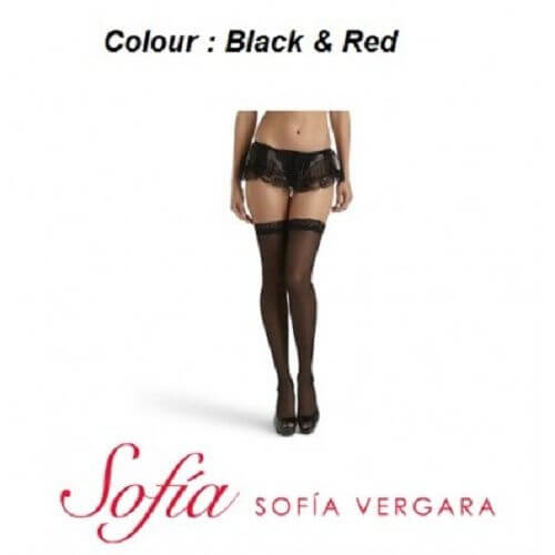 Sexy Sophia Vergara Lingerie offering you a sheer skirt and thigh high stockings, very eye catching sexy lingerie.