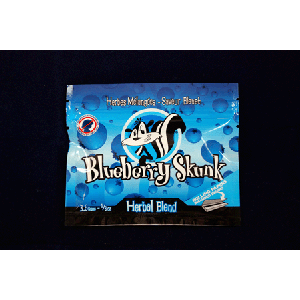 Three and a half grams of Skunk blueberry herbal smoke, including a free pack of flavored rolling papers.