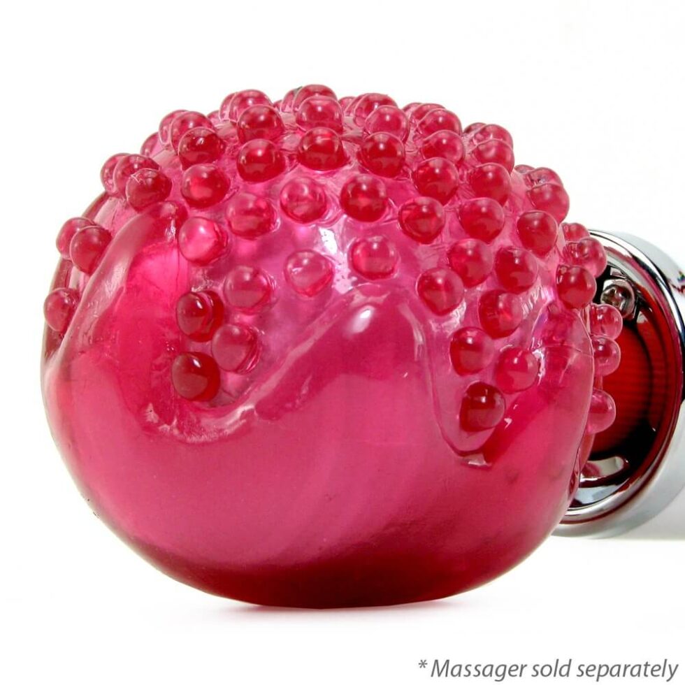 This attachment fits snugly on the head of the Magic Massager, and may fit on similarly sized massagers, too. Simply stretch over the Magic’s default head, a little lube helps. As for lube, this sleeve is compatible with both water and silicone based formulas.