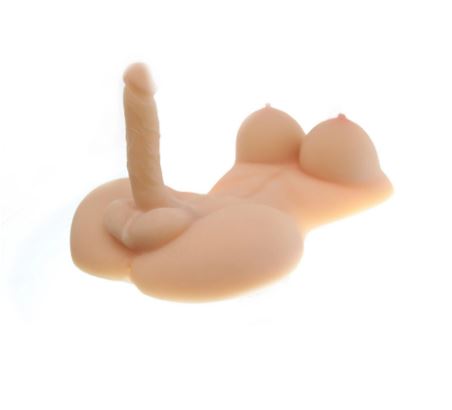 Your wildest fantasy cum to life! This lady boy tranny torso is over 21” long and is sporting some major fire power like large D-Cup breasts, ripped abs, a 7” built-in and flexible cock and a tight ass ready to take up to 8” of rock hard cock. Weighing in at 17 lbs, this little girl is ready to party!