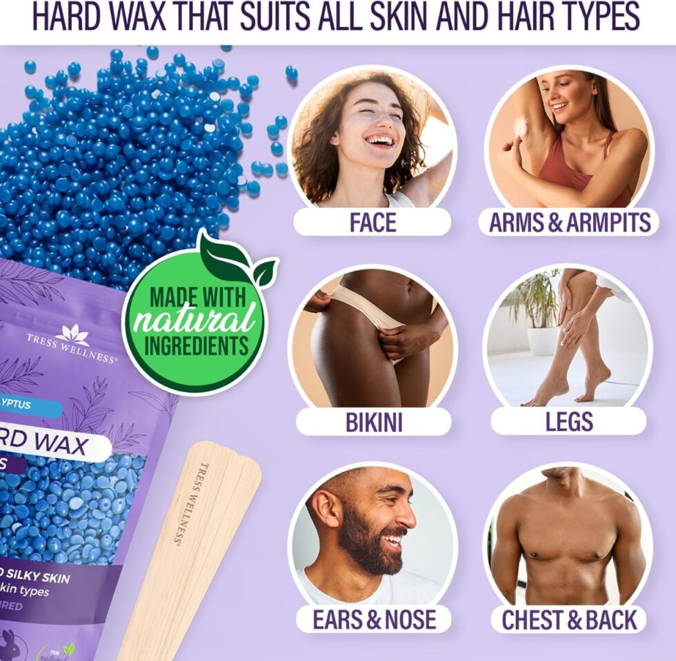 Tress Wellness waxes are dermatologically tested and designed for even the most delicate areas. Perfect for Brazilian, underarm, and face waxing with minimal irritation and maximum comfort.