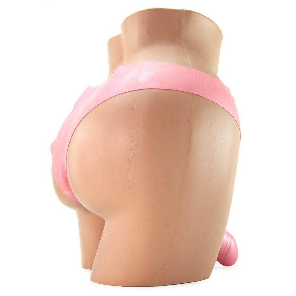 A silky smooth, self contained strap on set designed for simple, ultra pleasurable play, the Ultimate Harness combines a one-piece pink latex harness and a thick, deliciously curvy pink dildo with a sexily positioned bullet vibe targeting external sweet spots.