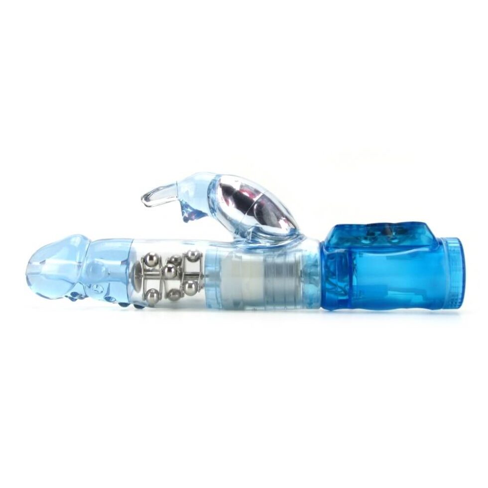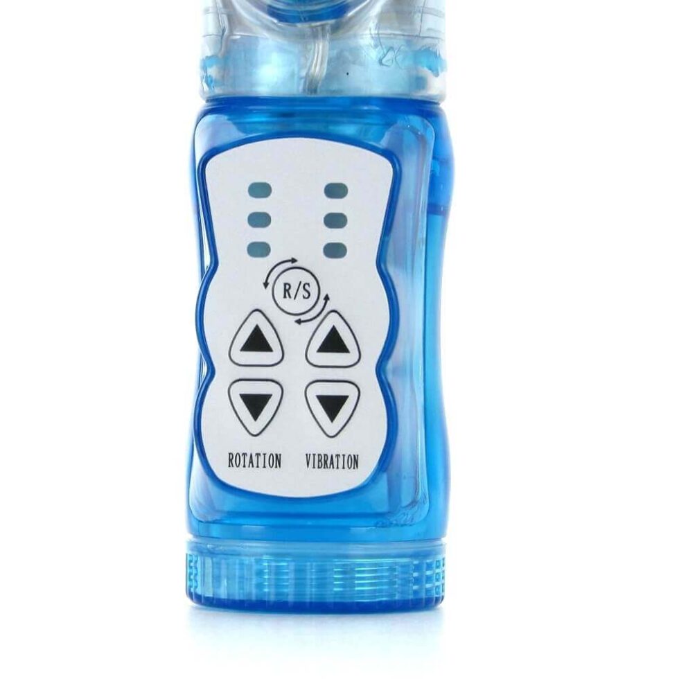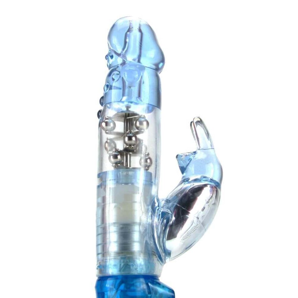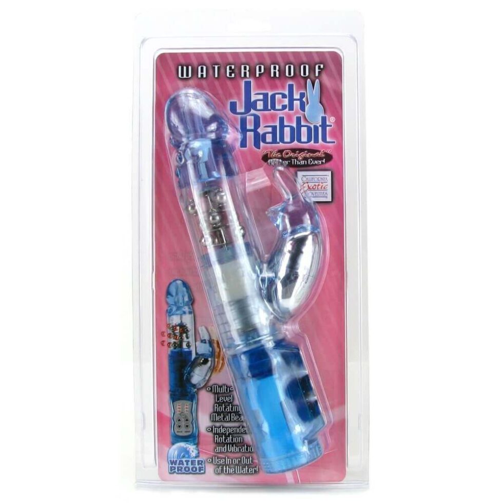 The Jack Rabbit is and always has been one of the top selling vibes and once you’ve given it a try, you’ll know why. Thanks to a dual-stimulation design, the Rabbit pleases internally and externally simultaneously. As the shaft rotates and moves inside you, the strong, independently powered clit bunny directs all it’s energy on the clitoris, which, for most women, is the secret to an amazing orgasm. A soft, flexible transparent jelly rubber material makes up this vibe, its nice and soft, but with a firmness at the textured, semi-realistic head for perfect positioning. The rotation of synchronized pleasure beads within the shaft, just under the head, are controlled on the intuitive interface at the base, separate push buttons control the rotation and multiple speeds of vibration for the clit stimulator; they’re within easy reach on the rounded base. Unlike some other similar vibes, you aren’t limited to where you can play with this Jackrabbit. It’s fully waterproof once the battery case is fastened securely, so you can take it into the tub or shower with you. If you’ll be using a 18, choose a good rubber compatible (water based) formula. Takes 3 AA batteries.