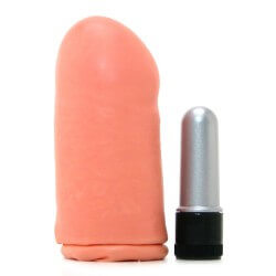 Stable yet nice and plush at its tip, the Enhancer’s extra soft and stretchy latex sleeve, once positioned over the head of the penis, rolls down over the shaft just like a condom, snugly surrounding for a secure feel. Strategically hollowed in the center, the foam core tip holds the included multi-speed bullet which, when activated, sends thrilling waves of vibration throughout. A soft foam cover keeps the harder surface of the vibe away fro the sensitive head of the penis- an extra plush CyberSkin pillow can be placed over the cover to further cushion the tip.